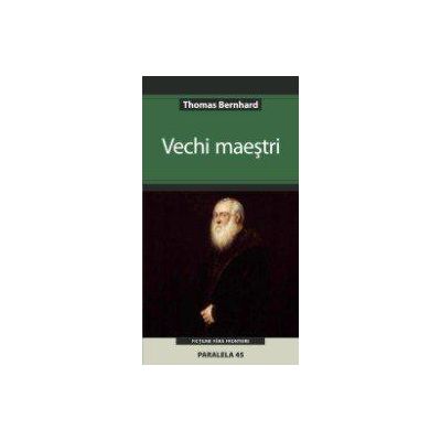Vechi maestri se hraneste din acele ingrediente care fac inconfundabila creatia lui Thomas Bernhard: stilul provocator, franchetea adesea brutala, muzicalitatea discursului narativ, reflectia deziluzionanta ce trece pe neasteptate in ilaritate. Personajul principal este criticul muzical Reger, care, de peste trei decenii, viziteaza din doua in doua zile un muzeu vienez pentru a contempla unul si acelasi tablou, Barbatul cu barba alba al lui Tintoretto. In Reger cititorul intalneste un personaj iconoclast care refuza sa se adapteze masei ghidate de instinctul de turma. El nu se sfie ste sa-si indrepte tirul necrutator asupra institutiilor statului austriac sau asupra titanilor din arta si filosofie. Polemica de un comic irezistibil cu Martin Heidegger este un exemplu stralucit al artei verbale bernhardiene, cu fluxul sau ritmat si imprecatia sa lirica. Daca astazi Bernhard insusi face parte din canonul literaturii de limba germana, exercitiul demolator aplicat vechilor maestri arata ca el nu si-a dorit sa devina o autoritate.